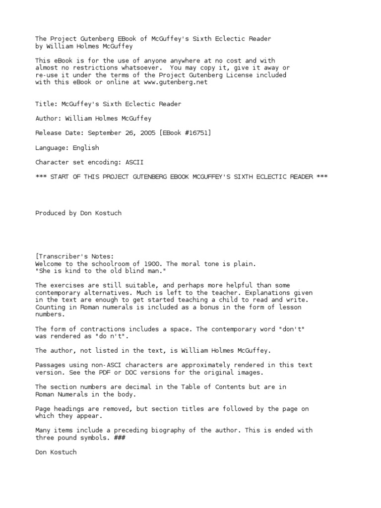 Mcguffey S Sixth Eclectic Reader By Mcguffey William Holmes 1800 1873 Pdf Project Gutenberg William Shakespeare